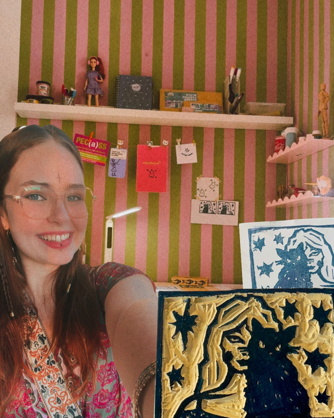Encontrarás ilustraciones y linografía sobre papel (originales y copias)